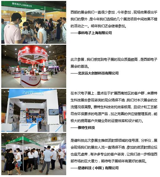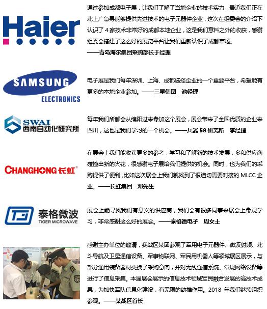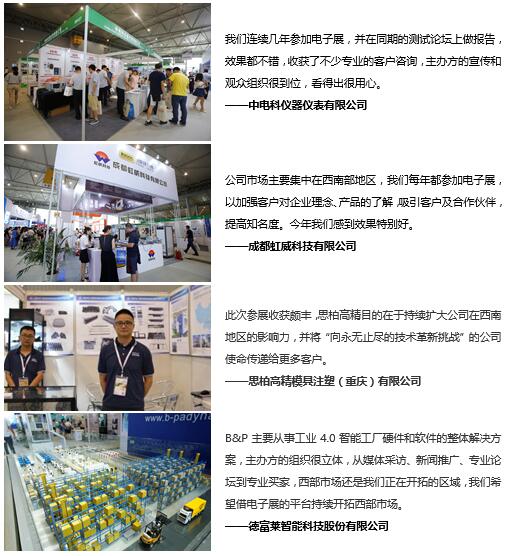 長虹集團、九州集團、重慶富士康、成都富士康、重慶格力電器、重慶軍工產業集團有限公司、四川錦江電器、成都飛機工業集團(132廠)、中航凱天(161廠)、成飛電子科技公司、華豐集團、成都京東方、成都天馬微電子、成都泰格微電子、成都先進功率半導體、成都康特電子、成都八九九科技、仁寶電腦、東方電氣等企業參觀團