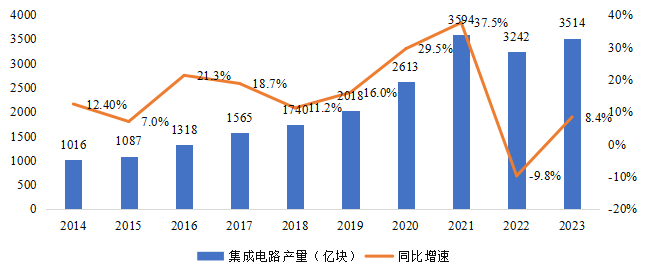1 2014-2023年我國(guó)集成電路產(chǎn)量規(guī)模